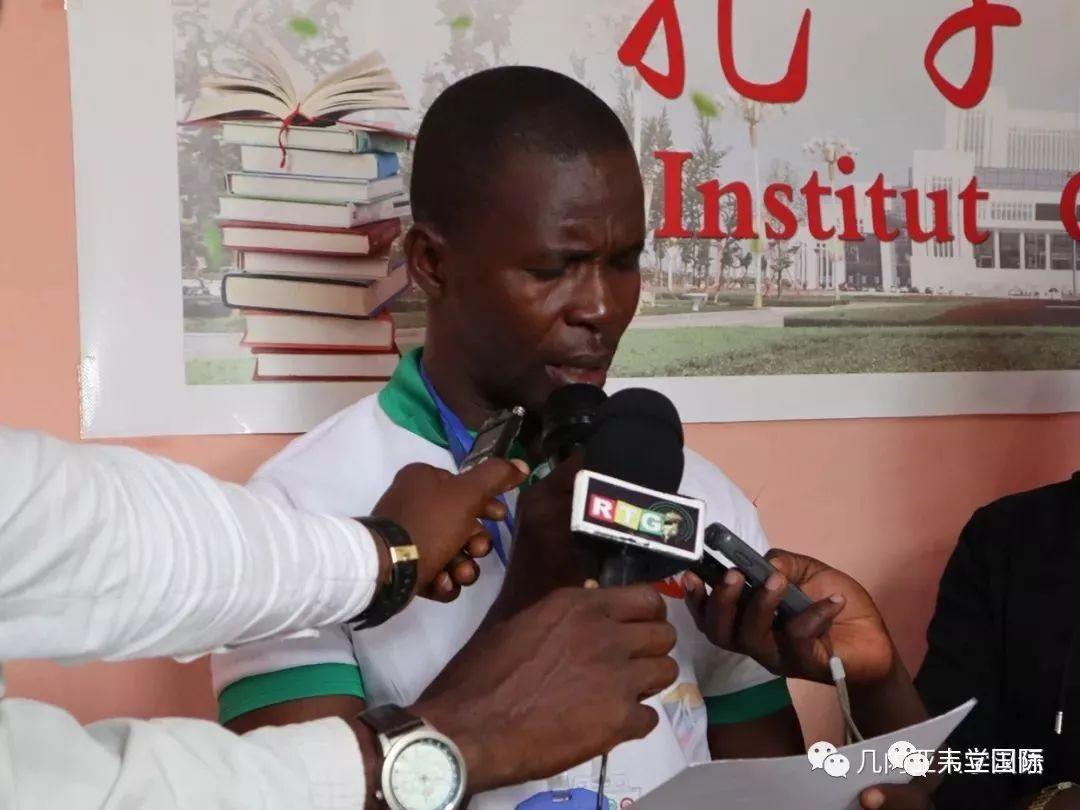 孔子学院中方院长王宝祥先生(上图)首先致辞,他欢迎各位嘉宾的到来,介绍了孔子学院办学情况,明确了举办中国语言文化培训班的意义。他说,孔子学院为几内亚人民提供了学习汉语的平台,这有助于中几文化交流和当地经济发展;赢联盟是以中国人为主体的跨国公司,为“一带一路”建设和几内亚当地经济发展做出了很大贡献;对当地员工进行中国语言文化培训是赢联盟担当社会责任、关心本地员工自身发展的体现,更是支持孔子学院传播中国文化的体现;这将有利于中几友好关系的发展,起到“民心相通”的好效果。
